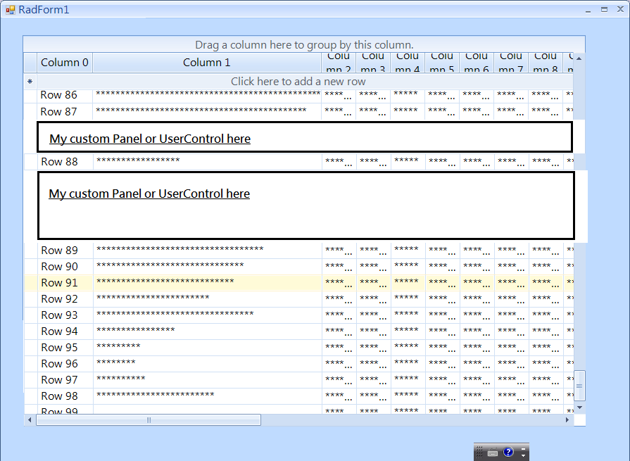 How could I embed my Control into the bottom of each row (not cell) .