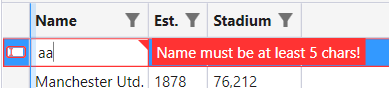 Nevertheless, I am talking about the RadGridView, not a TexrBlock. We are using the StyleManager with theme VisialStudio 2013 but my team updated some of the default styles. Could you share an example of en Error Template for the GridViewRow which put a red border and keeps the blue fill for selected rows?