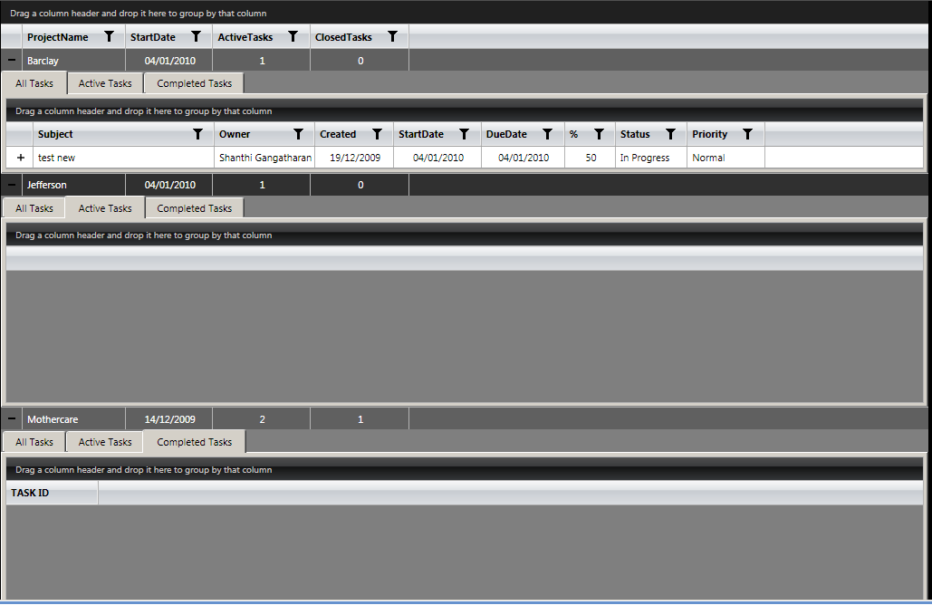 I can able to load Tasks GridView (first tab grid).