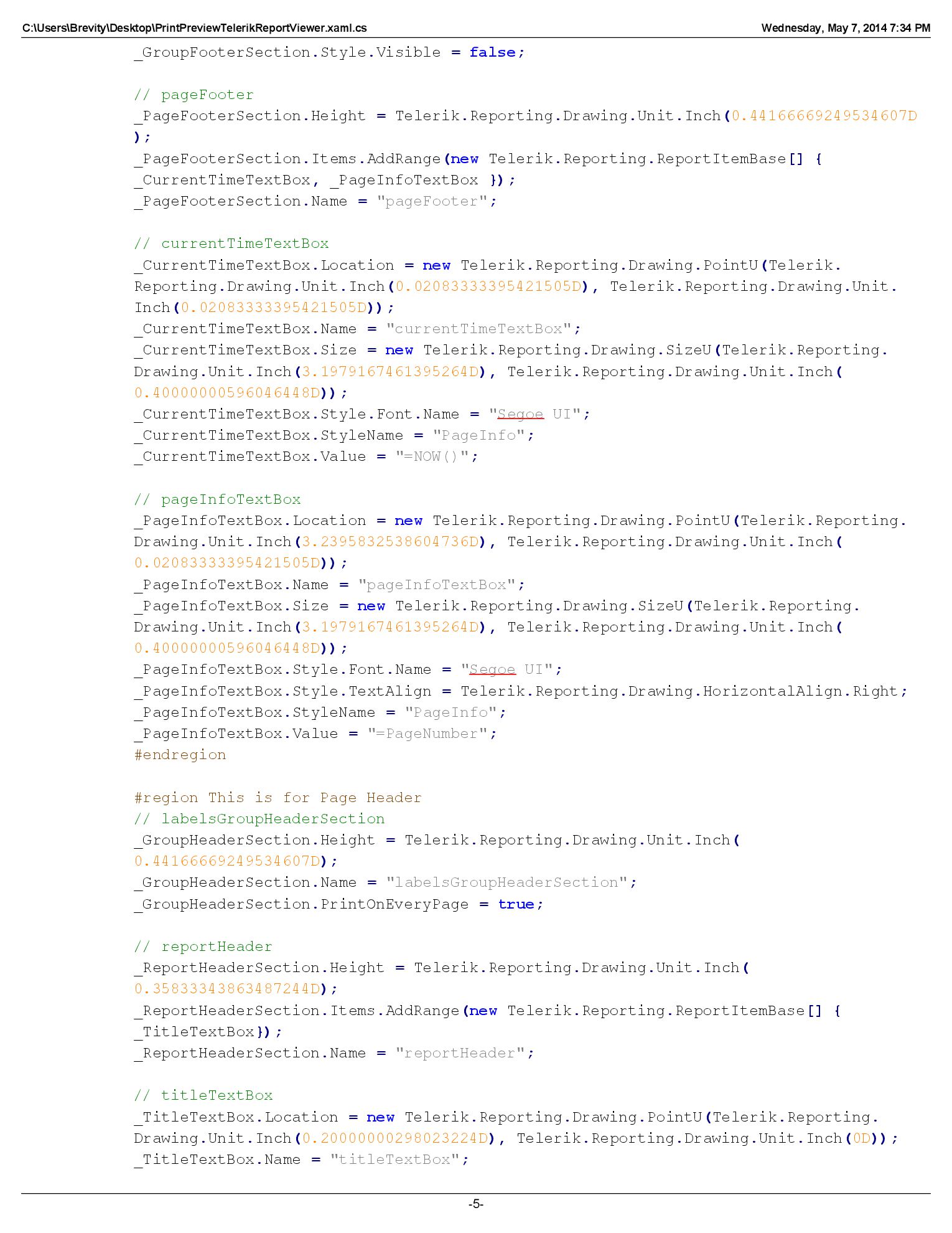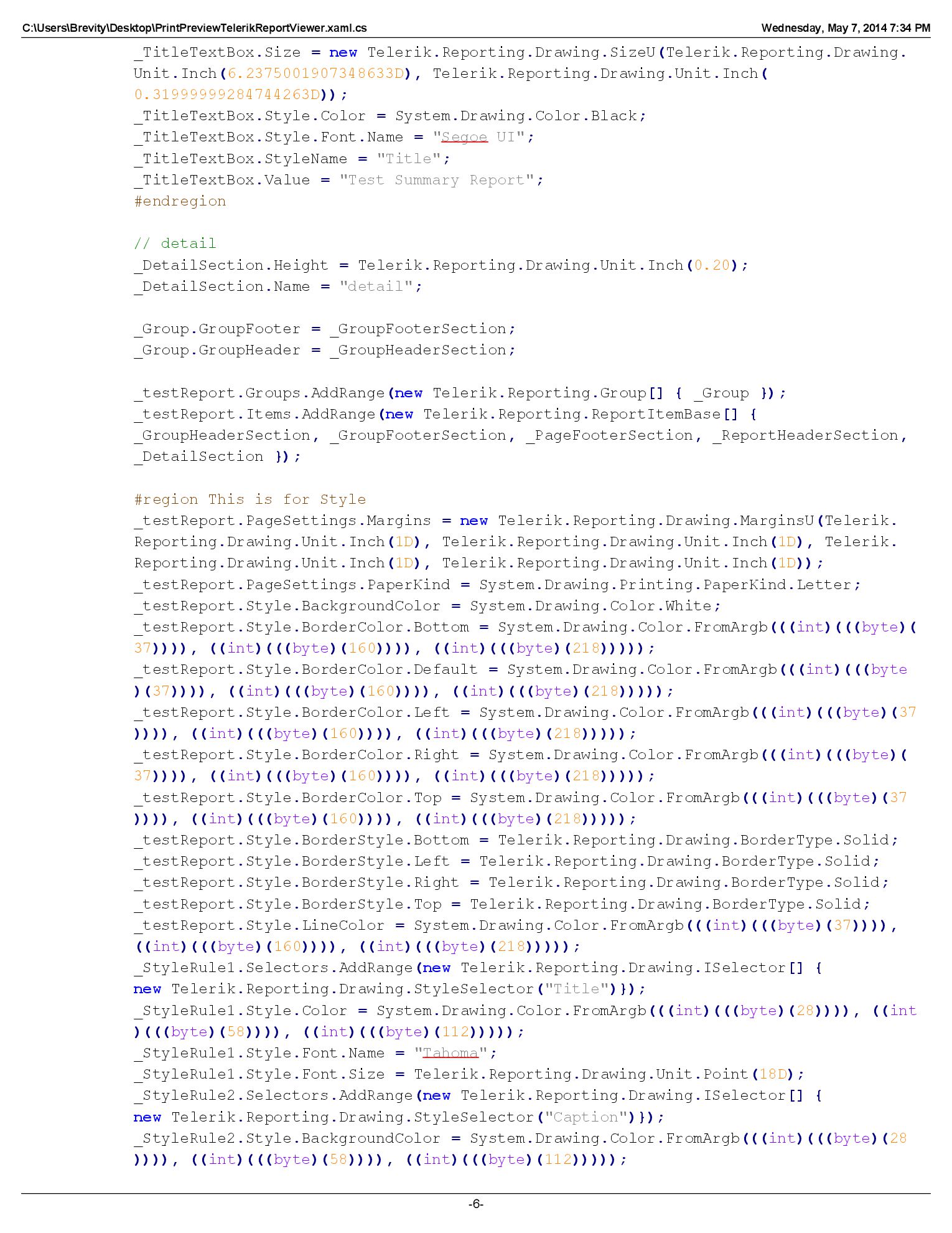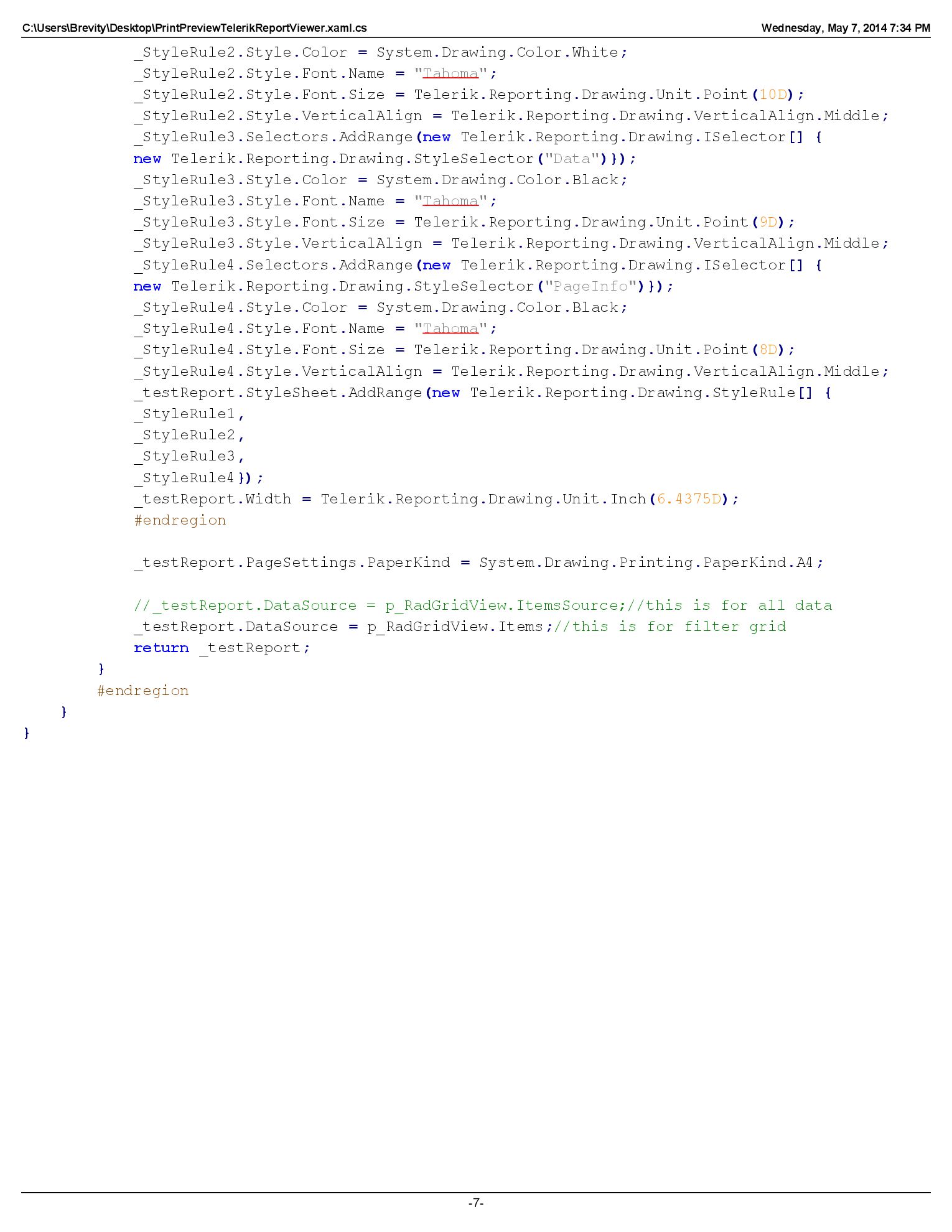 Using following code, we can print & preview of RadGridView using Telerik Reproting with grouping, filtering functionality of RadGridView with nos. of columns are generated dynamic in the Report.