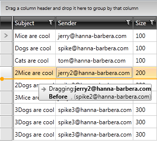 Is this behavior (having a nice line between the rows where you will drop the dragged item) still possible in the current iteration of telerik's (silverlight) radgridview?