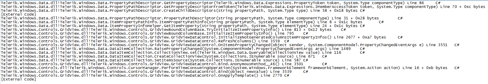 If required, I have a simple example that reproduces the error on a machine runing the above mentioned version but works fine on a machine running the 0309 version. I have attached screen shots of the exception and the stack trace.
