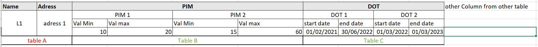 I want to display on a gridview data from a table A with cardinality 1-N with several tables (B,C,D, E ..) . I want to display all table data (A,B,C,D, E ..) with a condition : to have exactly one line for each data from table A. the data from tables B, C, D … I want to display them as many columns, and iterate as long as I have data.