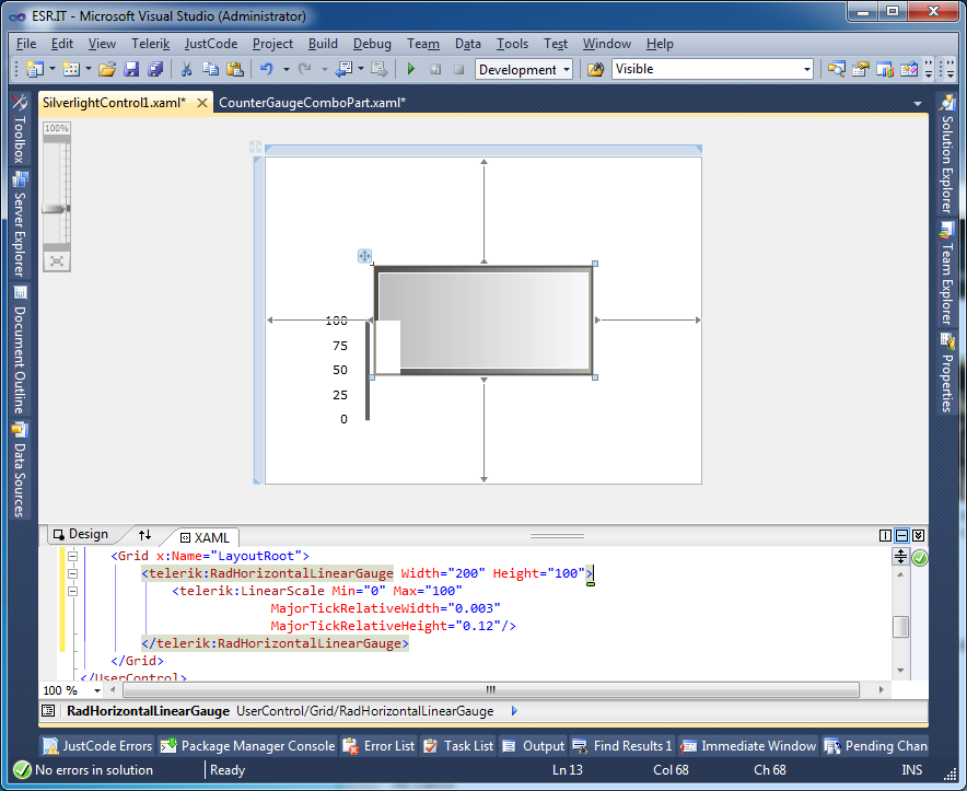 I have recently upgraded to 2012 Q2 controls and am now experiencing a problem with a UserControl which contains 2 horizontal gauges - basically they don't display correctly. I've attached an image (horizontalgauge.png) showing how a very basic linear scale (copied and pasted from your help) renders. Has something major changed between Q1 and Q2?