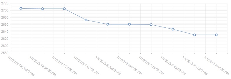 Hello, I am using a RadHtmlChart but the DataFieldY and DataFieldX values are not aligning. I am creating the chart programmatically and binding to a datatable and I am setting the data fields to two columns in the datatable, chartSeries.DataFieldY = "Amount", chartSeries.DataFieldX = "Date". However I get this (attached image). Notice that the line markers are not aligning with the dates on the x axis. Is there a way that I can put the date labels on the minor ticks or can I put the line markers on the major ticks so that the x and y data can intersect?