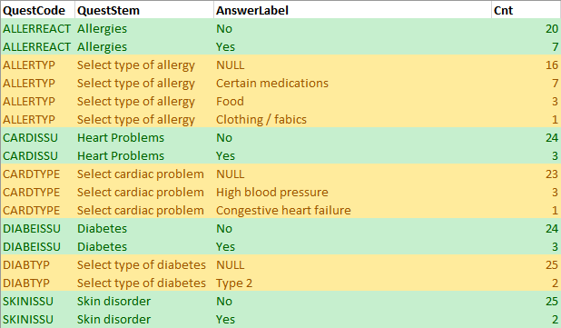 I have attached examples of the dataset I'm working with, and the sort of output I'm hoping to achieve with the RadHTMLChart. In the attached file, column QuestCode delimits the series, and AnswerLabel/Cnt identify the data elements for each pie chart.