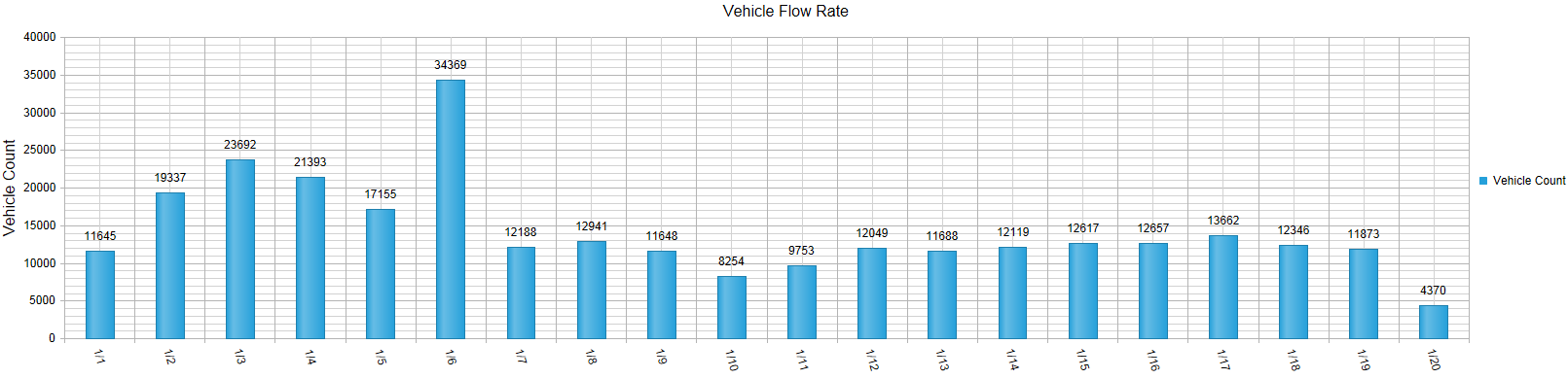 In my case the X axis is the date and the Y axis is the Vehicle count as you can see from the attached image.
