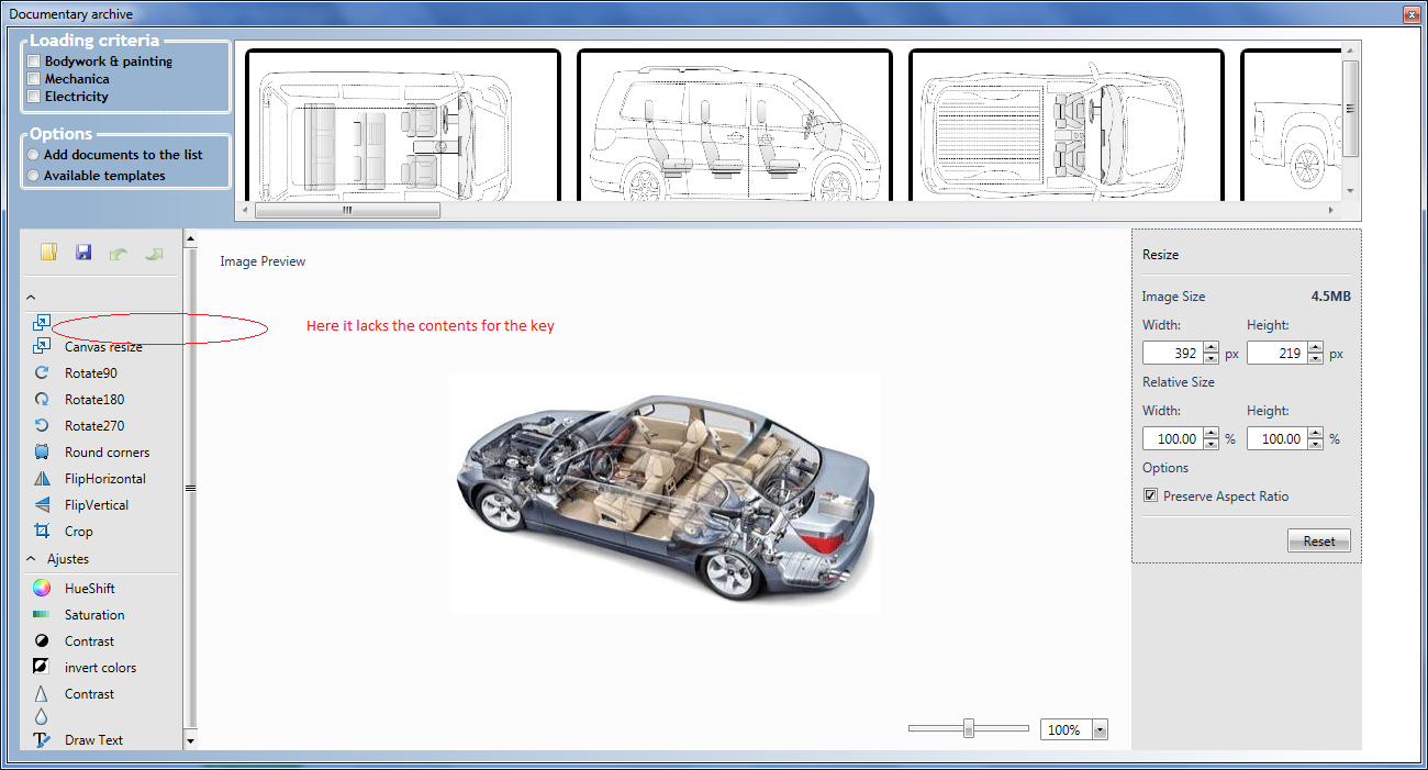 <telerik:RadImageEditorUI x:Name="BodyWorkAndPaintingTool" Grid.ColumnSpan="4" Margin="10,49,33,10" Grid.Row="1" Grid.RowSpan="4"> <telerik:RadImageEditorUI.ImageToolsSections> <telerik:ImageToolsSection Header="{Resx Disenador_Blur}" > <telerik:ImageToolItem ImageKey="Resize" Text="Resize" Command="commands:ImageEditorRoutedCommands.ExecuteTool"> <telerik:ImageToolItem.CommandParameter> <tools:ResizeTool x:Name="resizeTool"/> </telerik:ImageToolItem.CommandParameter> </telerik:ImageToolItem> <telerik:ImageToolItem ImageKey="Resize" Text="Canvas resize" Command="commands:ImageEditorRoutedCommands.ExecuteTool"> <telerik:ImageToolItem.CommandParameter> <tools:CanvasResizeTool/> </telerik:ImageToolItem.CommandParameter> </telerik:ImageToolItem>Code-behind: