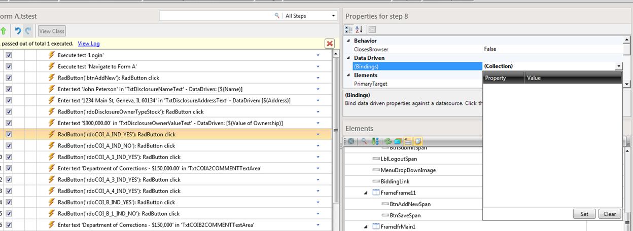 HtmlInputRadioButton button = ActiveBrowser.Find.ByExpression<HtmlInputRadioButton>("type=radio", "value=" + Data["category"].ToString());button.Check(true, true);Please see this video for more information on how this works.