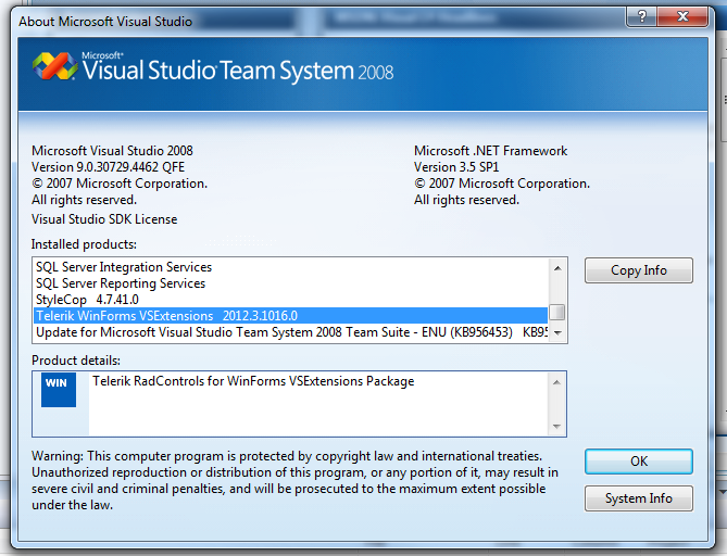 Telerik.WinControls.UI 2012.3.1017.20 (runtime version v2.0.50727)