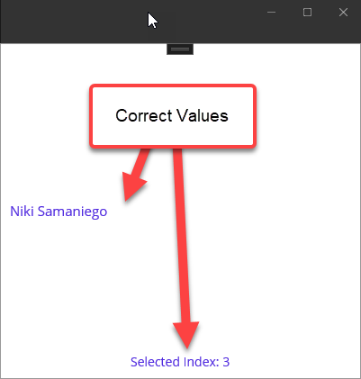 using System.Collections.ObjectModel; using Telerik.XamarinForms.Common; namespace GeneralFeatures; public partial class MainPage : ContentPage { public MainPage() { InitializeComponent(); BindingContext = new PeopleViewModel(); } } public class PeopleViewModel : NotifyPropertyChangedBase { public Person selectedItem; private string statusText; public PeopleViewModel() { Items = new ObservableCollection<Person>() { new Person("Freda","Curtis"), new Person("Jeffery","Francis"), new Person("Ema","Lawson"), new Person("Niki","Samaniego"), new Person("Jenny","Santos"), new Person("Eric","Wheeler"), new Person("Emmett","Fuller"), new Person("Brian","Johnas"), }; SelectedItem = Items[3]; } public ObservableCollection<Person> Items { get; set; } public Person SelectedItem { get => selectedItem; set { if (UpdateValue(ref selectedItem, value)) { var selectedIndex = Items.IndexOf(selectedItem); StatusText = $"Selected Index: {selectedIndex}"; } } } public string StatusText { get => statusText; set => UpdateValue(ref statusText, value); } } public class Person { public Person(string name, string lastName) { Name = name; LastName = lastName; } public string Name { get; set; } public string LastName { get; set; } public string FullName => $"{Name} {LastName}"; }Moving Forward