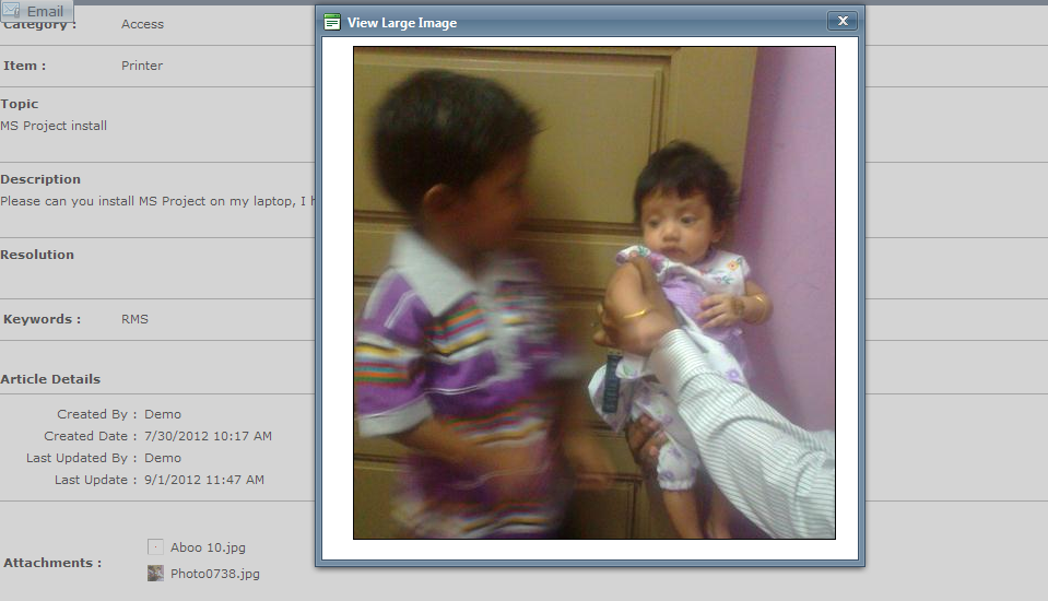 <telerik:RadListView ID="RadListViewAttachment" runat="server" ItemPlaceholderID="ListViewContainer" OnNeedDataSource="RadListViewAttachment_NeedDataSource" DataKeyNames="RecordID" OverrideDataSourceControlSorting="true"> <LayoutTemplate> <asp:PlaceHolder runat="server" ID="ListViewContainer" /> </LayoutTemplate> <ItemTemplate> <table> <tr> <td> <telerik:RadBinaryImage Style="cursor: pointer; display: block;" runat="server" ID="RadBinaryImage1" AutoAdjustImageControlSize="false" Width="15px" Height="15px" DataValue='<%#Eval("SaveFile") %>' AlternateText="<%$ Code:Resources.Articles.Article_LargeImage %>" ToolTip="<%$ Code:Resources.Articles.Article_LargeImage %>" onclick="<%#CreateWindowScript() %>" /> </td> <td> <label> <%#Eval("OrgFileName")%></label> </td> </tr> </table> </ItemTemplate> </telerik:RadListView>See the attachment.