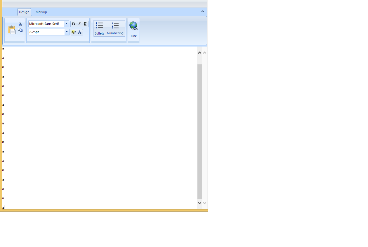 By default the Design view of the RadMarkupEditor has no horizontal and vertical scrollbar. By using the following code, I was be able to show the scrollbars: