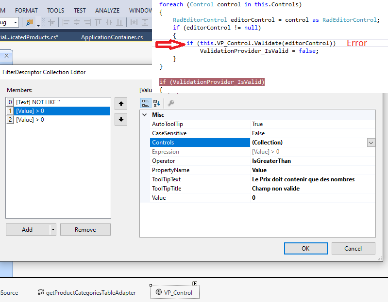 I've implemented this, but it's generating an error on validation ( Object reference not set to an instance of an object )