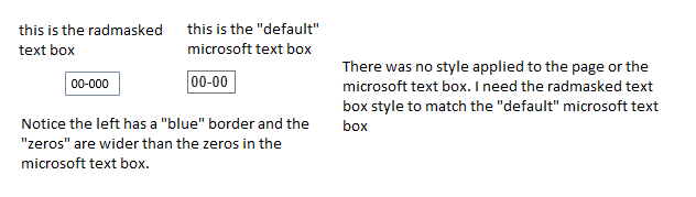 I need the "RadMaskedTextBox" style to match the "default" style that is on the "MicrosoftTextBox".