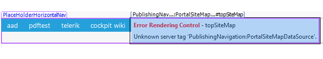 Any idea what additional change I should make to prevent it from generating this rendering control error: Unknown server tag 'PublishingNavigationPortalSiteMapDataSource' ?