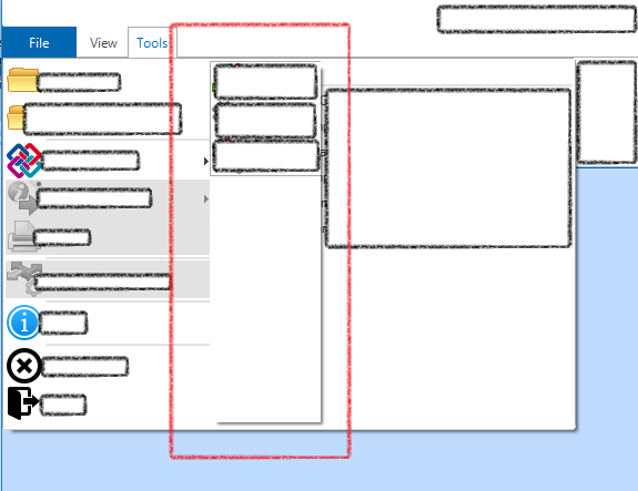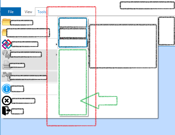 this.menuItem.MouseHover += (sender, args) => {this.menuItem.DropDown.PopupElement.MaxSize = new Size(100, 100);this.menuItem.DropDown.PopupElement.Size = new Size(100, 100);};However this results in some even more weird behaviour - the popup splits into two areas - you can see this in the attached picture (green area and blue area). I am quite certain that the blue area is represented as "menuItem.DropDown.PopupElement". The question is - what is called the green area? How can I control the size of that ?