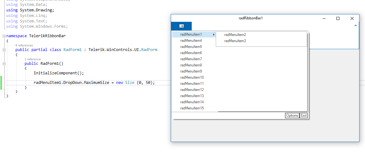 radMenuItem1.DropDown.MaximumSize = new Size(0, 50);I hope this will be useful. Let me know if you have additional questions.
