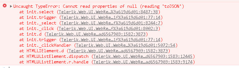 It is showing me the result from the web service but when i try to select an item it is throwing the error. I have attached the error screenshot.