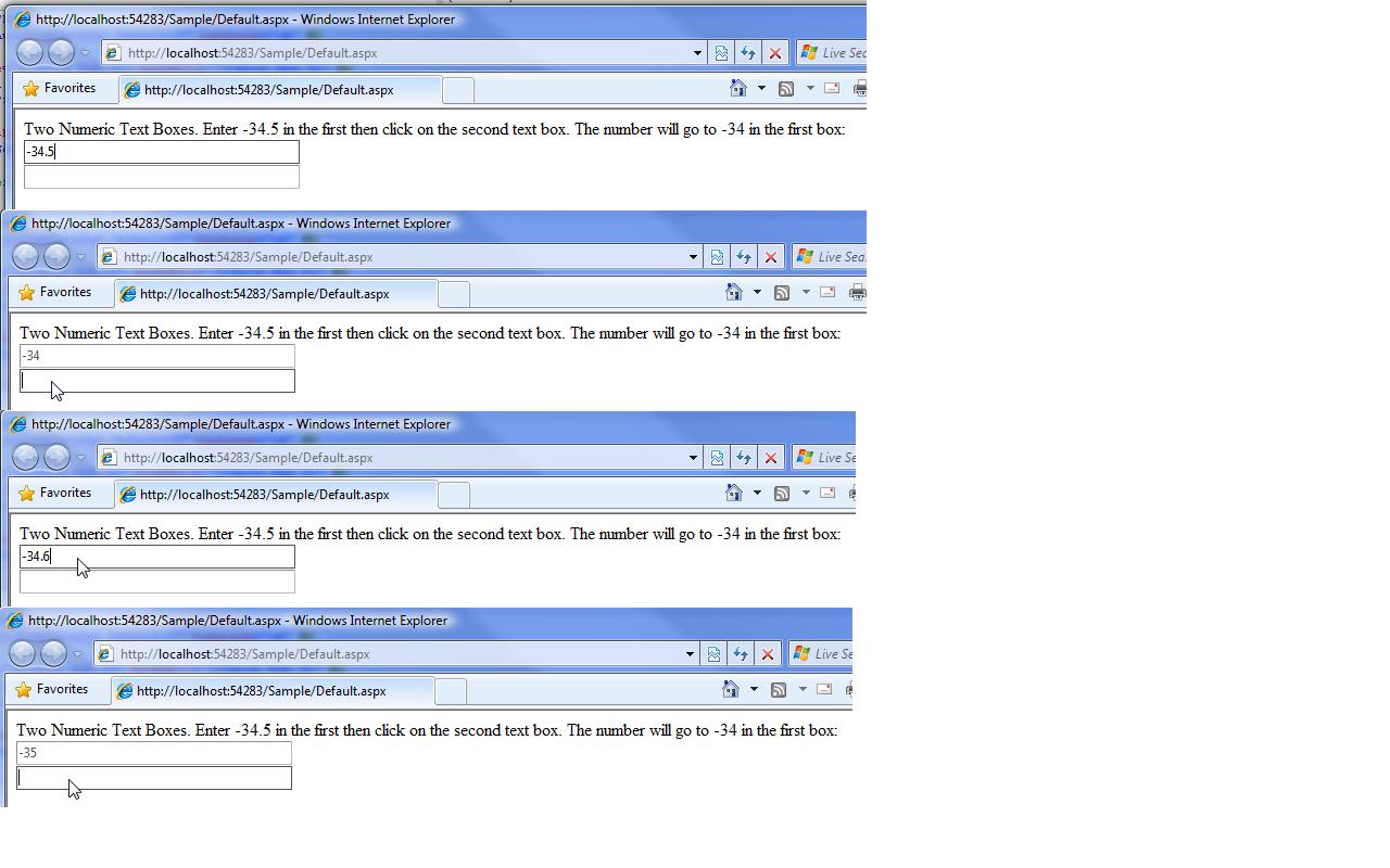 I have a form with a RadNumeric Textbox on it and here are the following results…