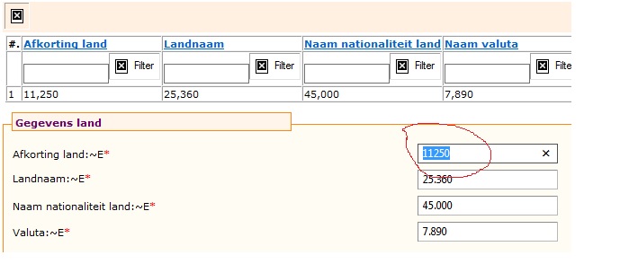 in dutch am giving as 2,25 when am selecting / submitting it is going as 225 in Database.