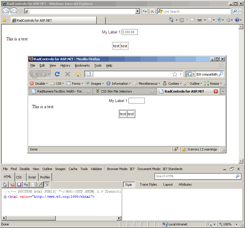 The ongoing development of the old ("classic") RadControls for ASP.NET has been discontinued for almost 2 years. As a result, you may experience problems in VS 2008 design time or IE8, as these have been released afterwards. Currently we fix only critical issues related to functionality. Upgrading to the new RadControls for ASP.NET AJAX, especially for new web applications is highly recommended for a number of reasons - features, performance, etc.