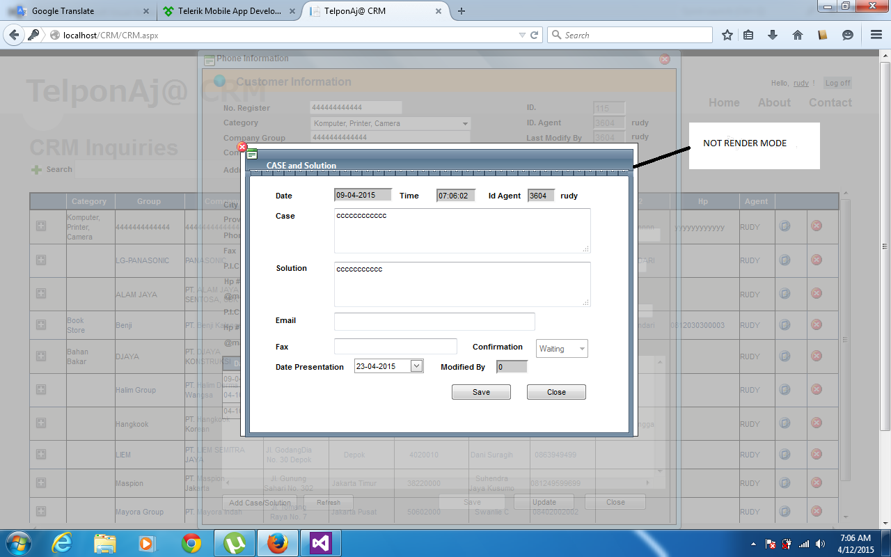Thanks marin, but I have tried successfully to skin but rendermode still does not work, I use radwindow within radwindow, this is my source: