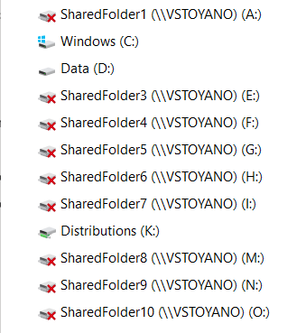 2. I mapped each of the 10 folders to a drive and then I stopped sharing each of the folders. You can check out the result in the drives.png.
