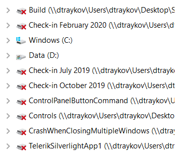 That said, I tested the scenario with drives mapped to inaccessible folders on one of my colleague's machines (you can check out the drives.png image). With this setup there is still no difference in the opening time of the dialogs on my machine (around 13 seconds).