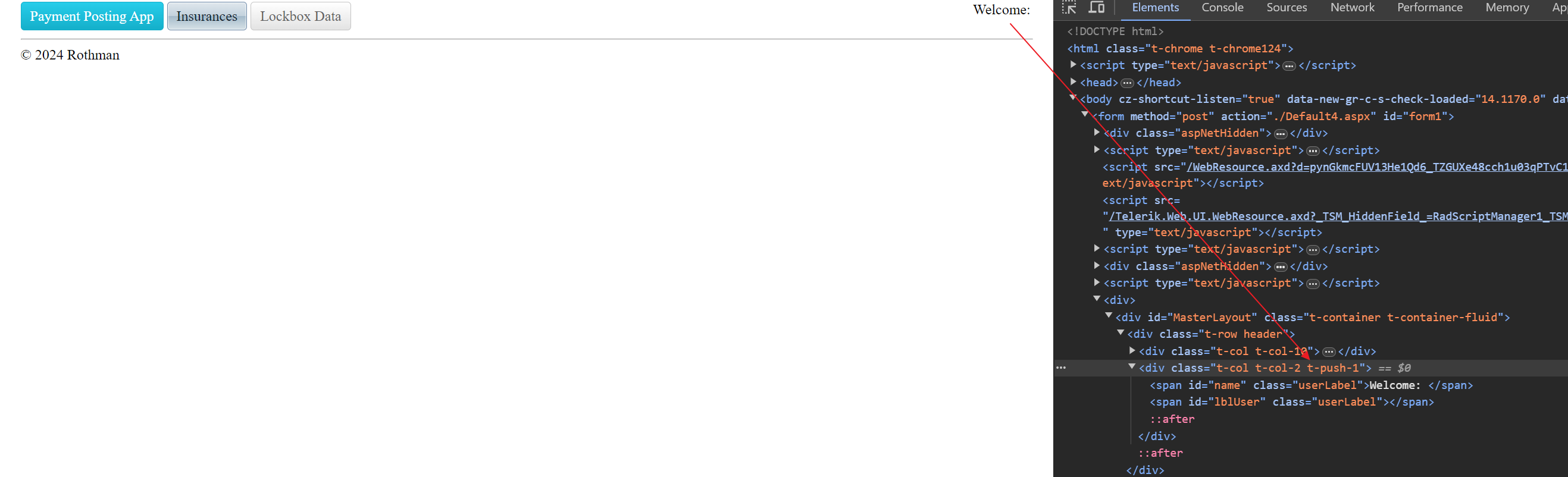 <asp:Label ID="name" runat="server" CssClass="userLabel" Text="Welcome: "></asp:Label>