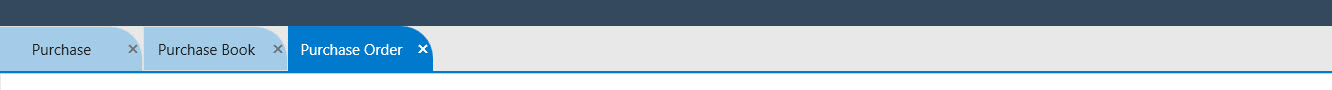 public Form1(){ InitializeComponent(); RadPageViewStripElement stripElement = (RadPageViewStripElement)this.radPageView1.ViewElement; stripElement.Items[0].DrawFill = true; stripElement.Items[0].GradientStyle = Telerik.WinControls.GradientStyles.Solid; stripElement.Items[0].Shape = new RoundRectShape(70, false, false, true, false); stripElement.Items[0].Text = "Purchase"; stripElement.Items[0].BorderColor = Color.FromArgb(255, 126, 188, 242); stripElement.Items[0].BackColor = Color.FromArgb(255, 126, 188, 242); stripElement.Items[1].DrawFill = true; stripElement.Items[1].GradientStyle = Telerik.WinControls.GradientStyles.Solid; stripElement.Items[1].Shape = new RoundRectShape(70, false, false, true, false); stripElement.Items[1].Text = "Purchase Book"; stripElement.Items[1].BorderColor = Color.FromArgb(255, 126, 188, 242); stripElement.Items[1].BackColor = Color.FromArgb(255, 126, 188, 242); stripElement.Items[2].DrawFill = true; stripElement.Items[2].GradientStyle = Telerik.WinControls.GradientStyles.Solid; stripElement.Items[2].Shape = new RoundRectShape(70, false, false, true, false); stripElement.Items[2].Text = "Purchase Order"; stripElement.Items[2].BorderColor = Color.FromArgb(255, 126, 188, 242); stripElement.Items[2].BackColor = Color.FromArgb(255, 126, 188, 242);}Note that you can customize the theme you use in your application in a way which is closest to your expected design by using Visual Style Builder. You can read more details about using the Visual Style Builder here: