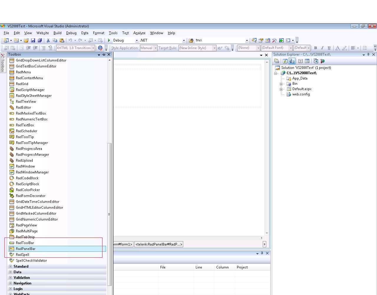 What did you mean by "The PanelBar control does not show up"? Could you please explain it a bit more? Was it that you did not see the panelbar icon in the toolbox or something else?