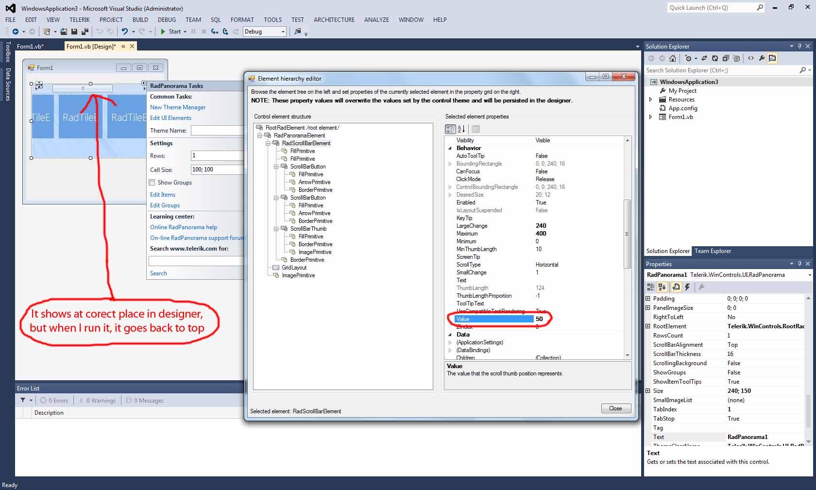 I should add that I tested RadHScrollBar and RadVScrollBar with the same way I explained, and they worked fine.