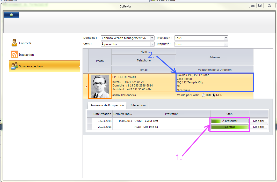 Private Class ProcessProgressionColumn Inherits GridViewDataColumn Public Sub New(ByVal UniqueName As String, ByVal fieldName As String) MyBase.New(UniqueName, fieldName) End Sub Public Overrides Function GetCellType(row As Telerik.WinControls.UI.GridViewRowInfo) As System.Type If TypeOf row Is GridViewDataRowInfo Then Return GetType(ProcessProgressionCellElement) End If Return MyBase.GetCellType(row) End Function End Class Private Class ProcessProgressionCellElement Inherits GridDataCellElement Public Sub New(ByVal column As GridViewColumn, ByVal row As GridRowElement) MyBase.New(column, row) End Sub Protected Overrides ReadOnly Property ThemeEffectiveType As System.Type Get Return GetType(GridDataCellElement) End Get End Property Public Overrides Function IsCompatible(data As Telerik.WinControls.UI.GridViewColumn, context As Object) As Boolean Return TypeOf data Is ProcessProgressionColumn AndAlso TypeOf context Is GridDataRowElement End Function Private StateProgress As RadProgressBarElement Protected Overrides Sub CreateChildElements() MyBase.CreateChildElements() StateProgress = New RadProgressBarElement() With {.Maximum = 4} Me.Children.Add(StateProgress) End Sub Protected Overrides Sub SetContentCore(ByVal value As Object) If value IsNot Nothing AndAlso value IsNot DBNull.Value Then Me.StateProgress.Value1 = If(value > 0, value, 0) Me.StateProgress.Value2 = If(value < 0, Me.StateProgress.Maximum, 0) Me.StateProgress.Text = helper.GetDescription(CType(value, Process_Prospection.StatuProspection)) Me.StateProgress.IndicatorElement1.BackColor = If(value <> 4, Color.FromArgb(153, 238, 158), Color.FromArgb(153, 225, 238)) Me.StateProgress.IndicatorElement1.BackColor2 = If(value <> 4, Color.FromArgb(8, 208, 4), Color.FromArgb(4, 187, 208)) Me.StateProgress.IndicatorElement1.BackColor3 = If(value <> 4, Color.FromArgb(4, 208, 51), Color.FromArgb(4, 159, 208)) Me.StateProgress.IndicatorElement1.BackColor4 = If(value <> 4, Color.FromArgb(160, 238, 153), Color.FromArgb(153, 219, 238)) End If End Sub End Class
