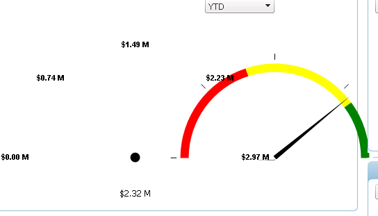 <telerik:RadRadialGauge ID="gActionReq" Skin="Telerik" runat="server" BackColor="White" Width="150px" Height="100px" Style="text-align: left;"> <Scale MinorUnit="5" Max="60"> <Ranges> <telerik:GaugeRange Color="LightGreen" To="20" /> <telerik:GaugeRange Color="Yellow" From="20" To="40" /> <telerik:GaugeRange Color="Red" From="40" To="60" /> </Ranges> </Scale></telerik:RadRadialGauge>Greetings,
