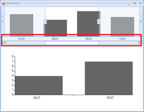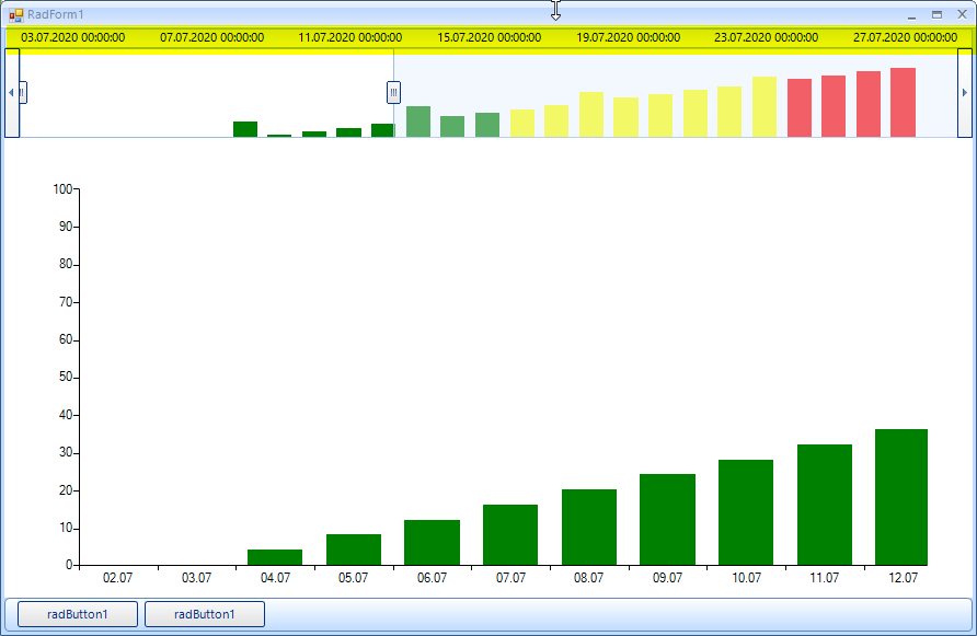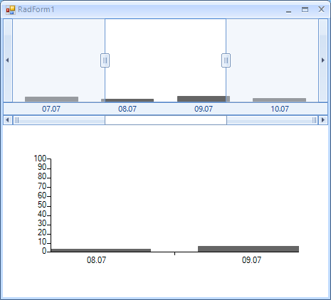 BarSeries.HorizontalAxis.LabelFormat = "{0:dd.MM}";In the first screenshot you can see that the rangeselector shows the full DateTime format with hours, minutes and seconds.