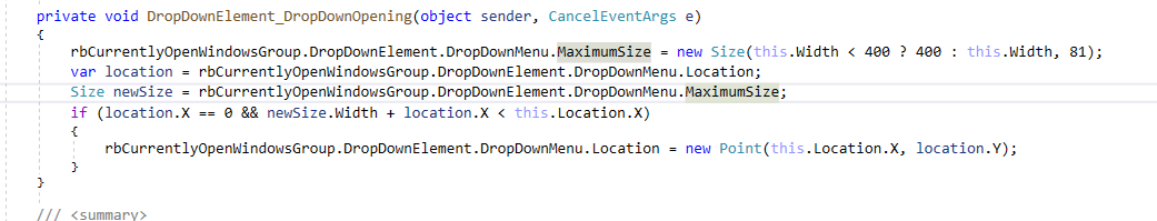 The problem was that this popup is stretched to fit the entire screen. I've added a few lines of code to set the maximum size of this popup and it works fine. However, for the first click, popup is aligned to the left corner of the screen. I tried to set Location property of DropDownMenu and DropDownMenu.PopupElement, but it didn't help.