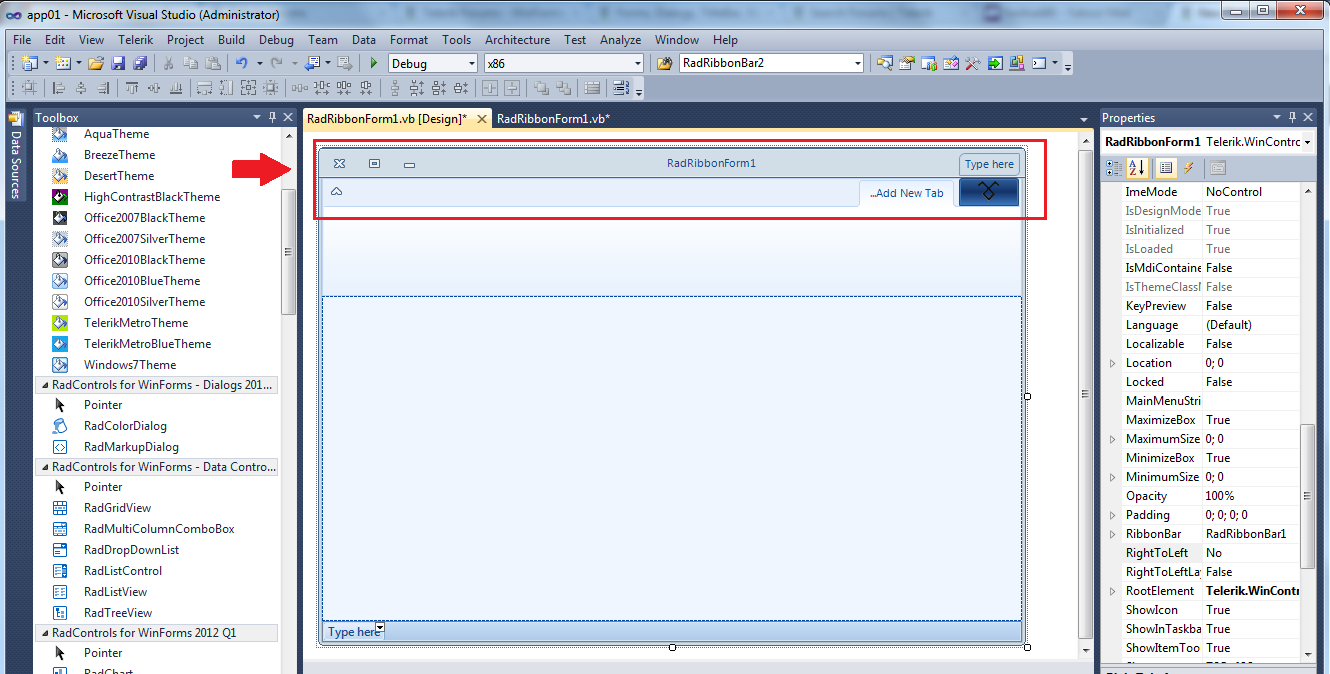 when i use a RadRibbonForms in my application, at design time, titlebar buttons and directions are in a right manner as you see in attached file (a.png) but when i run the application, it was appear in a wrong style and direction (please see b.png file in attachments).
