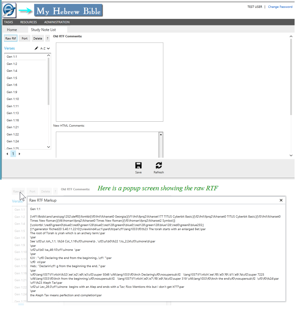 - Right now my study note edit screen has a control for the RTF and empty control for the HTML. I want to also create an copy/paste button that will convert the RTF into HTML and paste into the new control. What I was wondering is if I can just do a batch and convert all the data to HTML and then decide which part of the HTML (if any) I want to keep. This would eliminate the user having to click a copy/paste button. Is this doable?