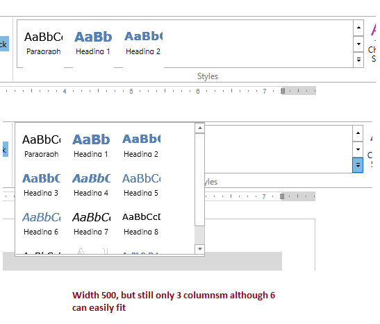 We are using RadRichTextBoxRibbonUI for out internal editor and would like to increase width of the StylesGallery so that the styles are arranged in more than 3 columns. Ideally, the number of columns is always three even if the control is wider (see the screenshot attached). Ideally we want a number of columns matches the control width.