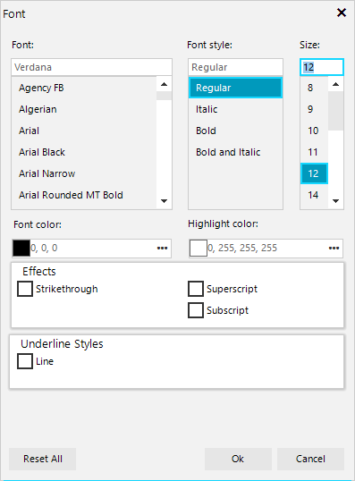 I have a RadRichTextEditor with Context Menu enabled. On that menu is a button called 'Font...' and it takes you to a Font Styles window where you can change basically all the font settings.