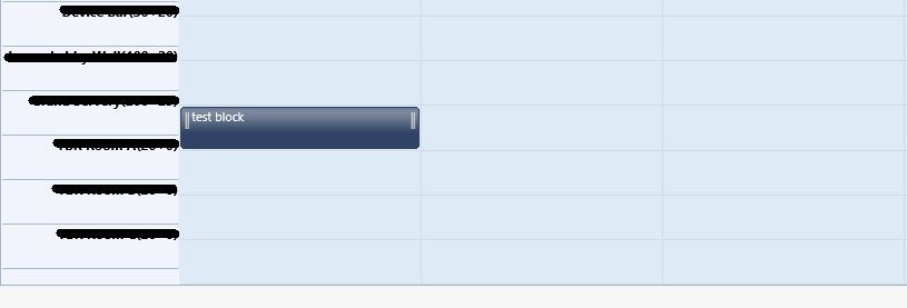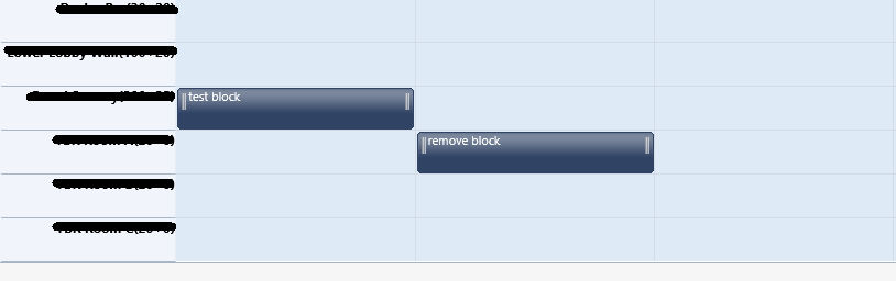 I deleted the appointment "remove block" and the scheduler rebinds which now misaligned the Scheduler as shown in the second image.