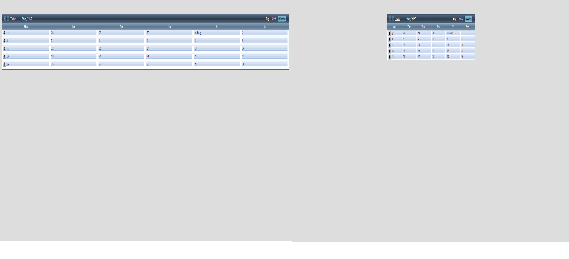 I im interested on the monthly view and on that view it works as if it were a printscreen. Ive attached the pdf im getting from your online demo.