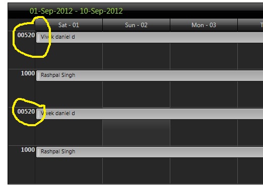 Am using Radscheduler to Book the Employee for the Particular Project, i need to display the Employees in the Left side, on the right side it will list Project Period Date which i mentioned.