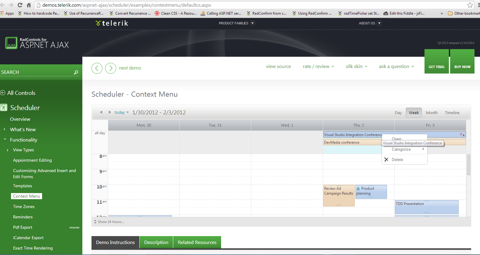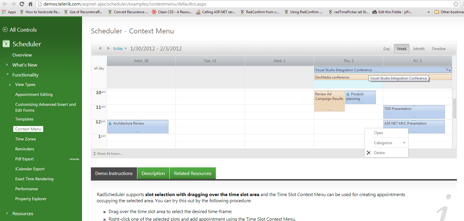 When I right click on booking in telerik demo site, I get context menu on proper place as shown in Screen1(attachment).