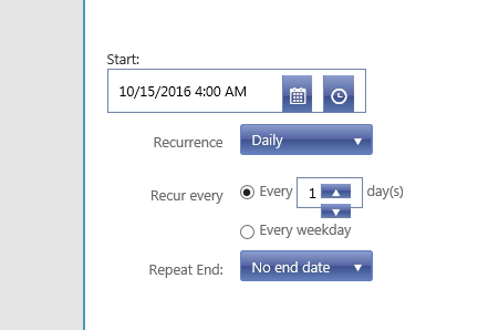 I am new to the UI for ASP.NET AJAX. I am still learning. I am interested in using RadSchedulerRecurrenceEditor alone, not with RadScheduler. The problem I encounter now is that I see only the Recurrence label, and "Never" is selected in the dropdown box. I write the logic that reads the RecurrenceRule from Appointments.xml and assigns it to RecurrenceRuleText of the RadSchedulerRecurrenceEditor control, but the control does not show the entries from my RecurrenceRule. Can you please help? Thank you very much.