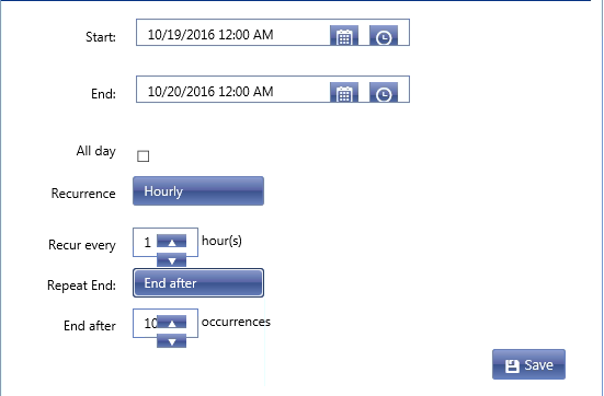 I got one issue with RadSchedulerRecurrenceEditor. In my test project, I created 2 items (Test 1 and Test 2) in the test RadGrid. For Test 1, I assigned an Appointment instance where the RecurrenceEditor is a regular Hourly recurrence (Test1RecurrenceEditor.PNG). For Test 2, I assigned a new Appointment where the RecurrenceEditor is an Hourly recurrence with EndAfter (Test2RecurrenceEditor.PNG). I saved after I created each. Test 2 was selected. After I clicked on Test 1, my project threw the exception of "Sys.WebForms.PageRequestManagerServerErrorException: Cannot have multiple items selected".
