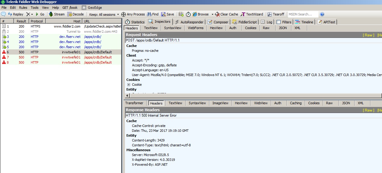 Every 500 error you see in the trace is when I press a key in the keyboard on the radsearchbox.