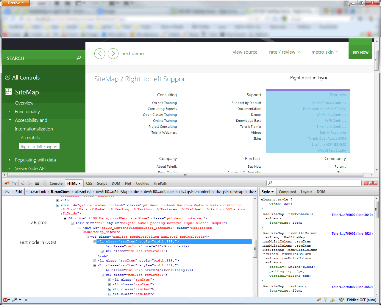 I add a RadSiteMap to page and set it's 'dir' attribute to 'rtl'. it cause 'RadSiteMap_rtl' class gets added to the rendered html.