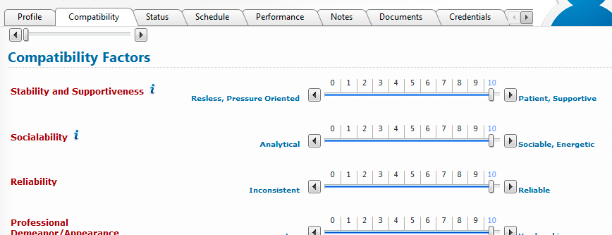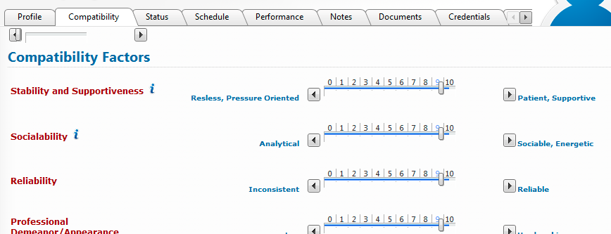 If I click on my ‘profile’ tab and then back to my ‘compatibility’ tab the RadSliders will display correctly and as expected in ImageB.